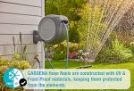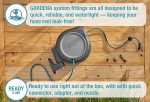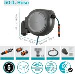 Gerekli olan her şey dahildir: Geri Çekilebilir Hortum Makarası, makara, birinci sınıf hortum, GARDENA Ayarlanabilir Sprey Nozulu ve kolay kurulum braketi (şablon dahil) içerir. Bağlantı hortumu (5 ft) ve tüm bağlantı adaptörleri de temin edilir.