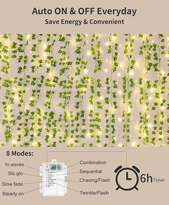 Sahte Sarmaşık Çelenk: Her biri yaklaşık 7 fit uzunluğunda, toplam 80 fit uzunluğunda, toplam 80 fit uzunluğunda 12 iplikçik yapay sarmaşık sarmaşıkımızla alanınızı canlandırın. Ek pizzazz için, yaratıcı DIY projeleri için mükemmel, 80 ampullü 490 inçlik sıcak beyaz LED ışık dizisi ekledik. Işık zinciri, sarmaşık sarmaşıklarına sabitlenmemiştir, yaratıcı ayarlar için DIY esnekliğini en üst düzeye çıkarır.