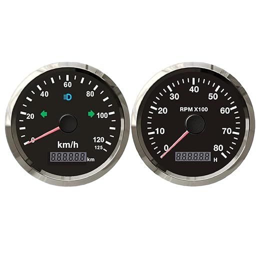 85 mm ölçüm aleti seti, 0 – 125 km/h, GPS takometre, 0-8000 devir/dk takometre, arka plan aydınlatmalı, kırmızı-sarı, karavan, motorlu tekne için