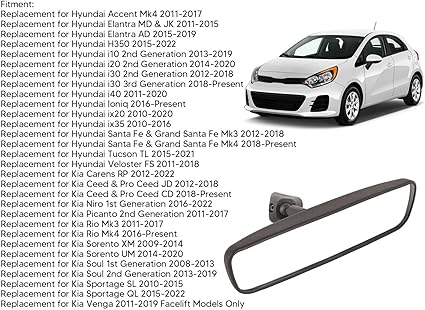 Uygulanabilir Model : İç dikiz aynası , Accent i10 i20 i30 i40’ın yerine geçer; Carens Soul için yedek , lütfen satın almadan önce modelinizin uygun olup olmadığını onaylayın .