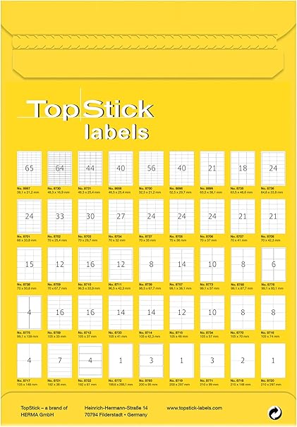 8726 Evrensel Etiketler DIN A4, 63,5 x 72 mm Kendinden Yapışkanlı, Basılabilir, 100 Yaprak, Kalıcı Yapışkanlı, Mat Beyaz 105 x 37 mm