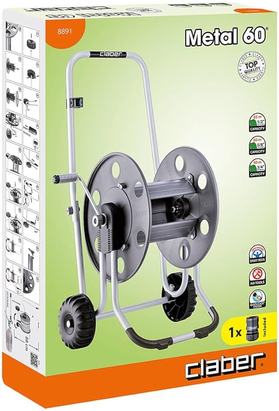Hortum makarası kapasitesi: 85 m (1/2” hortum), 60 m (5/8” hortum) veya 40 m (3/4” hortum)
