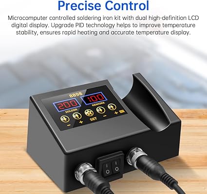 Hassas Kontrol: Çift yüksek çözünürlüklü LCD dijital ekrana sahip, mikrobilgisayar kontrollü havya kiti. Yükseltme PID teknolojisi, sıcaklık stabilitesinin iyileştirilmesine yardımcı olur, hızlı ısıtma ve doğru sıcaklık gösterimi sağlar.