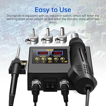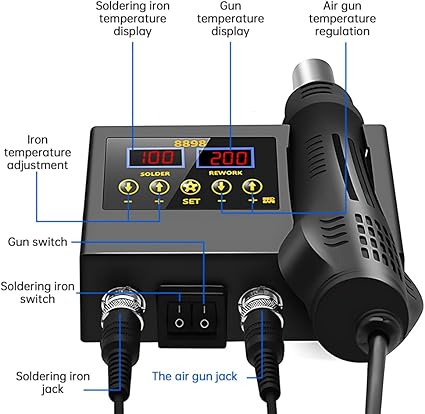 8898 2’si 1 Arada Lehimleme İstasyonu LCD Dijital Ekran Sıcak Hava Tabancası Kaynak Yeniden İşleme Sıcaklığı ve Hava Hacmi Cep Telefonu için Ayarlanabilir Havya Kiti BGA SMD PCB IC Onarım Havy