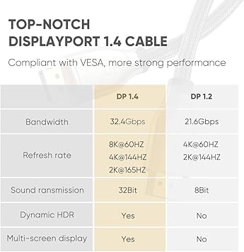 8K 60Hz 4K 144Hz v1.4 DisplayPort Görüntü ve Ses Aktarım Kablosu 1 Metre