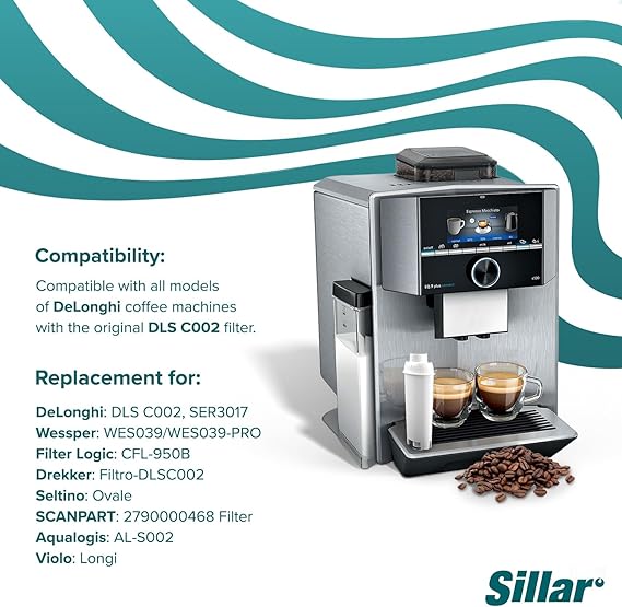 UYUMLULUK – Filtre aşağıdaki modellerle uyumludur: Dinamica Plus, Dinamica, Magnifica S, PimaDonna Class, PrimaDonna Elite, PrimaDonna Exclusive, PrimaDonna S Evo, Autentica, Eletta, Cappuccino Smart. DeLonghi ile uyumludur: EC, ECAM, ESAM, ETAM, SECAM, EC800, Evo serisi (Filtre değişimi: SER3017 / DLSC002)