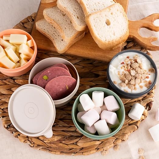 8’li Yuvarlak Mini Saklama Kabı Küçük Sızdırmaz Kapaklı Çok Renkli Pratik Amaçlı Kap Erzak Çerez Piknik Gıda (280, Yuvarlak, 8, Set 1)