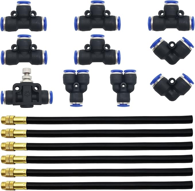 8mm Hızlı Bağlantı, 6 Adet Hızlı Yağmurlama Kafası Evrensel Ayarlama, Sulama ve Çiçek Sulama Sulama Mikro Sprey Yeni Nozul, 10 Adet Hava İtme Hızlı Bağlantı Parçaları ile