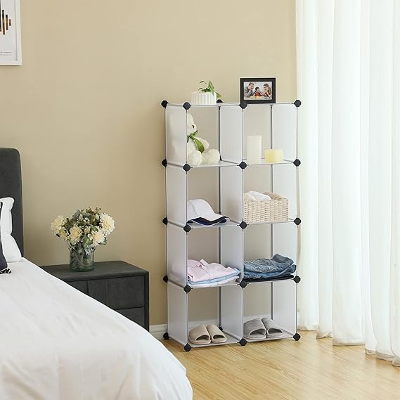 9 Bölmeli Raf Sistemi, Ayakkabı Rafı, Banyo Rafı, Giysi Dolabı, Oyuncak Dolabı, 93 x 31 x 123 cm, Beyaz Lpc115S