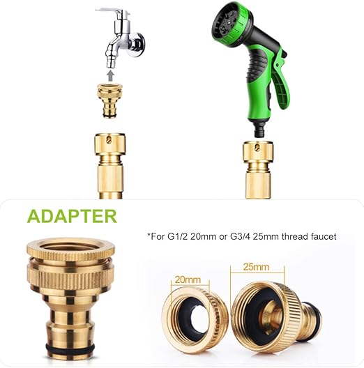 Tüm Pirinç Bağlantı Parçaları: Pirinç konektör ve hortum adaptörü, aşınmaya dayanıklı dış kapak, sağlam dayanıklı yapı, G1/2 20mm veya G3/4 25mm dişli musluğun sızdırmaz bağlantısını sağlar.