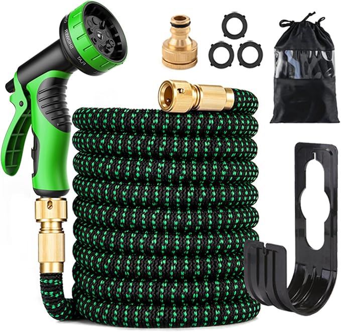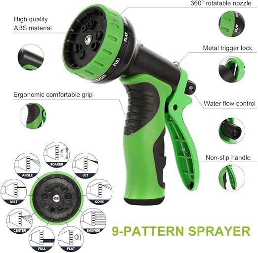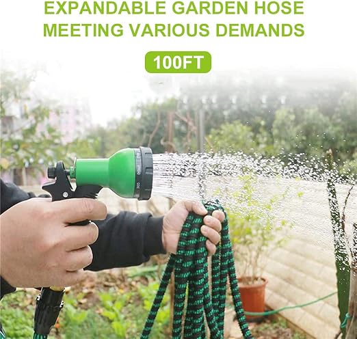 9 Fonksiyonlu Nozullu 100ft Genişletilebilir Bahçe Hortumu, Katı Pç Bağlantı Parçaları ve Çift Lateks Çekirdekli Esnek Güçlü Su Hortumu