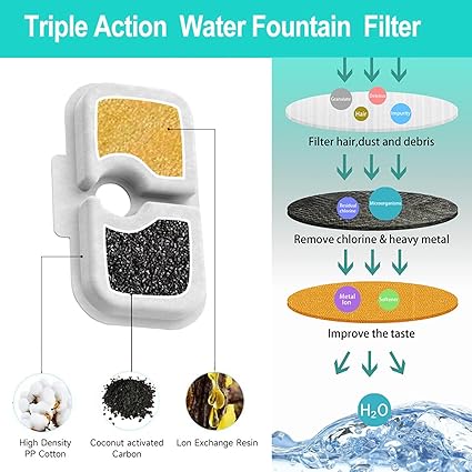 【Evcil Hayvanınızı Sağlıklı Tutun】Her evcil hayvan çeşmesi filtresi bir pamuk tabakası, aktif karbon ve bir iyon değişim reçinesinden oluşur. Saçları, ağır metalleri filtreleyebilir ve suyun tadını iyileştirebilirler, böylece evcil hayvanlar bütün gün temiz ve tatlı su içebilir, bu da su tüketimini artırmaya ve idrar yolu enfeksiyonu riskini azaltmaya yardımcı olur.