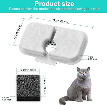 【Öneri】 En iyi sonuçları almak için lütfen kullanmadan önce filtrenizi 5 dakika suda bekletin. Kullanmadan önce fazla karbon tozunu temizlemek için filtreyi akan suyla durulayın. Çeşmeyi kaç kedi kullandığına bağlı olarak filtreyi 2 ila 4 haftada bir değiştirmenizi öneririz.