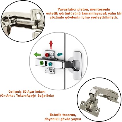 90 Derece Frenli Dolap Kapak Menteşesi Pistonlu Tas Menteşe