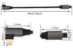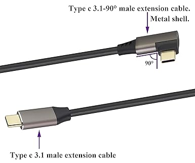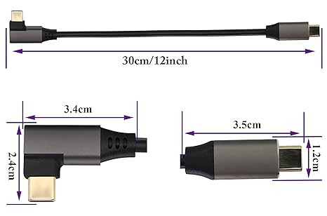 Miktar: (2 adet) Boyut: Uzunluk (0,3 metre/1 fit) Malzeme: Plastik alüminyum alaşım kase Tip C adaptörü. Renk: (gri) Alüminyum alaşımlı kablo gövdesi Tip C adaptörü (siyah). Bağlantı 1: Sağ ve sol açı 90 derece Gen 2 (10Gbit/s) USB 3.1 Tip C uzatma kablosu (3A), fiş 2: Gen 2 (10Gbit/s) USB Tip c 3.1 fiş (3A). (Not: Gerçek veri aktarımı dosya boyutuna, dosya tipine ve kullanılan donanıma bağlıdır.