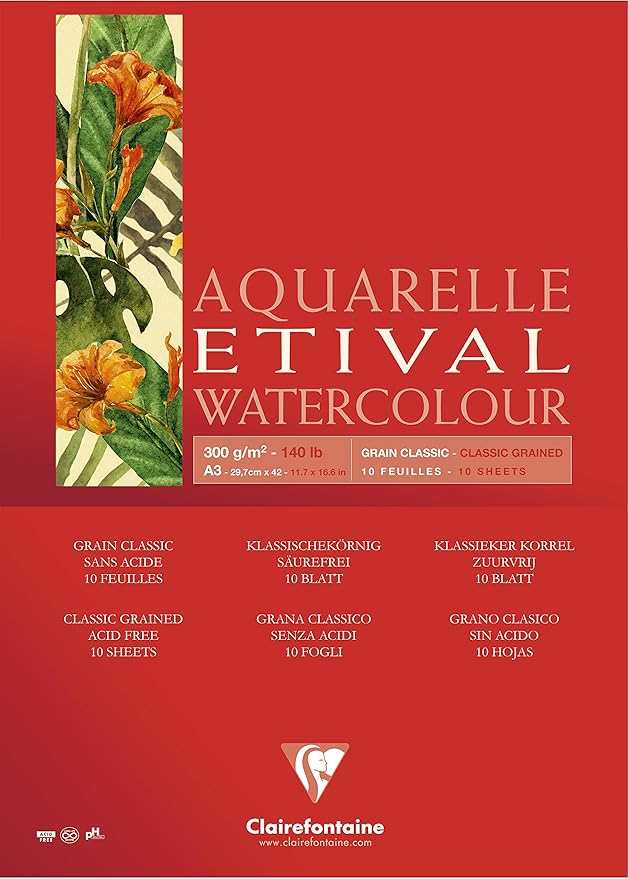 Clairefontaine ETIVAL Sulu Kağıt ETIVAL’i keşfedin: %100 selüloz, doğal beyaz. Çalışma kalitesi. Klasik taneli yüzey, sanat eserlerini ince bir şekilde vurgulamak için ideal