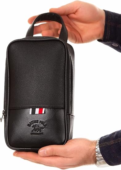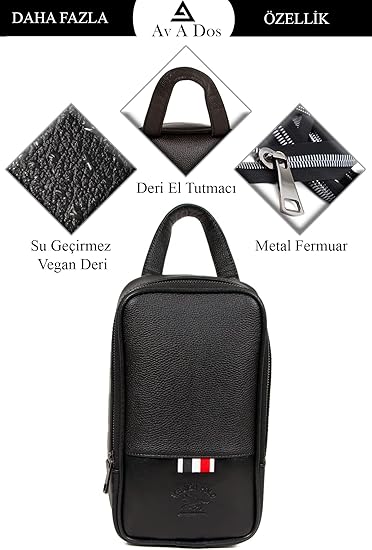 A Dos Erkek Siyah Vegan Deri Tıraş Seyahat Kozmetik Portföy Bakım El Çanta Günlük