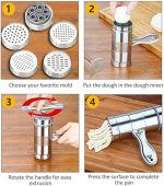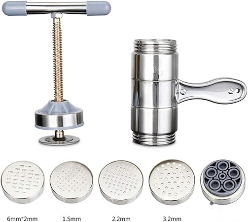 / A Paslanmaz Çelik Erişte Makinesi, Ev Makarna Pres Makinesi, Taşınabilir Mutfak Pres Çıkarıcı (Dahil 5 Kalıp Kafası)