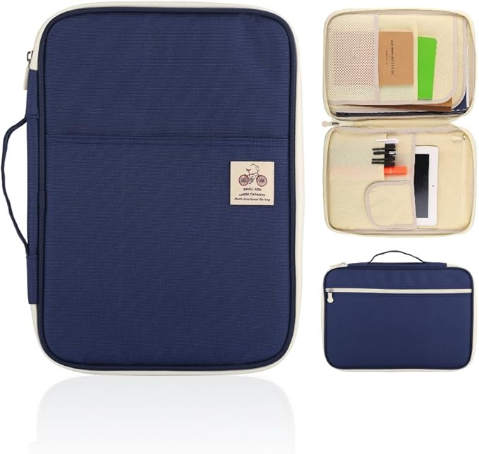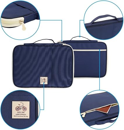 A4 Belgeler Çanta Portföy Düzenleyici Tutucu – Çok Fonksiyonlu Seyahat Çantası Dizüstü Bilgisayar, Ipad, Belgeler ve Kalemler için Kullanışlı Fermuarlı Kılıf (Mavi)
