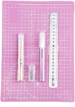 A4 el işi kesme matı seti, kesme matı, cetvel ve maket bıçaklı kesme şablonu, kendin yap el işi alet seti, model yapımı, el işi, dikiş için (pembe)