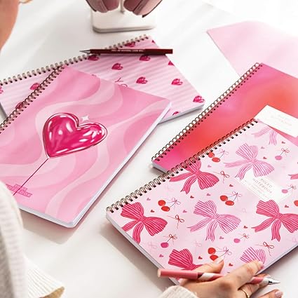 A4 Spiralli Karton Kapak 4’lü Set Çizgili Okul Defteri 80 yaprak, Ders Programlı Kırmızı Kalp