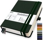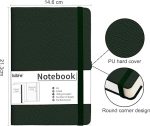 A5 Çizgili Not Defteri, 360 Sayfalı Defter, Kalın 100 G/M² Mürekkebe Dayanıklı Kağıt, Pu-Sert Kapaklı Defter, İç Cep, Elastik Bant(Green)