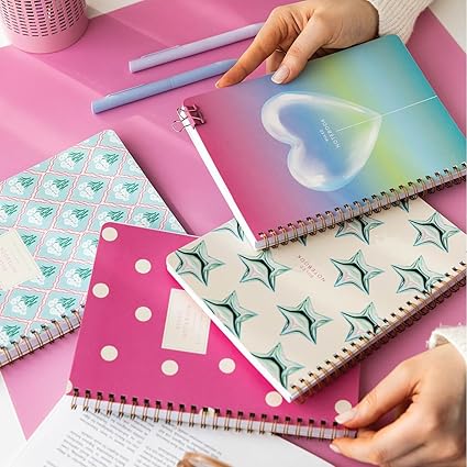 A5 Spiralli Karton Kapak 4’lü Set Çizgili Okul Defteri 80 yaprak – Ders Programlı Mavi Pembe Yıldız