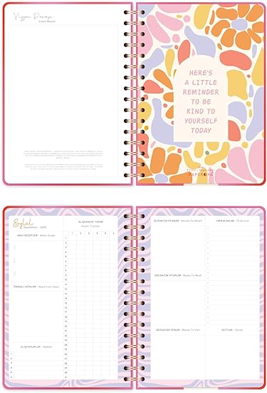 Kişisel Gelişim Alanları – Vizyon ve Değerlendirme Sayfaları: Vizyon panosu, yıllık değerlendirme ve geleceğe mektup sayfaları ile hedeflerinizi yapılandırabilir ve gelişiminizi takip edebilirsiniz.