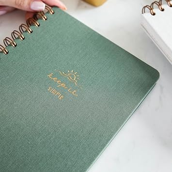 A5 Spiralli Sert Kapak Keten Çizgili Tarihsiz Not Defteri Yeşil
