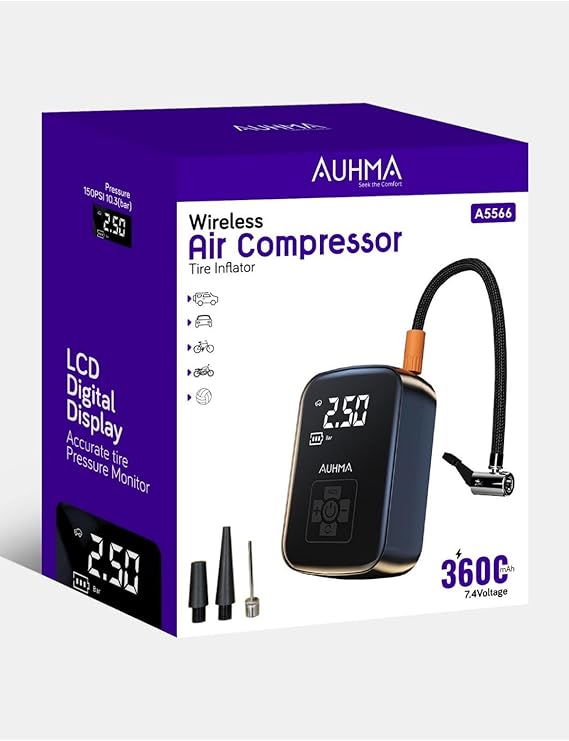 A5566 Kablosuz Dijital Hava Kompresörü | 4000mAh Powerbank | 150 PSI | LED Işıklı Taşınabilir Şarjlı Pompa
