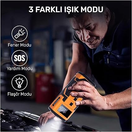 Çok Amaçlı Kullanım Alanı Sadece araç akü takviyesi ve lastik şişirme işlevleriyle değil, aynı zamanda şişme yatak, bisiklet tekerleği ve top şişirme gibi çok çeşitli kullanımlarla da pratik çözümler sunar. Aracınızda mutlaka bulunması gereken, çok işlevli bir cihazdır.