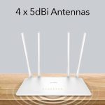 4 adet 10/100Mbps LAN bağlantı noktasına sahip AC1200 Dual Band WiFi yönlendirici, 100Mbps internet planı için idealdir ve kablolu cihazlarınızı doğrudan bağlamanıza izin verir.