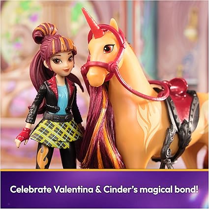 Academy Valentina ve Tek Boynuzlu At Cinder seti – Sevilen Netflix dizisinden yaklaşık 12 cm orijinal figürler, 4 yaş+ için