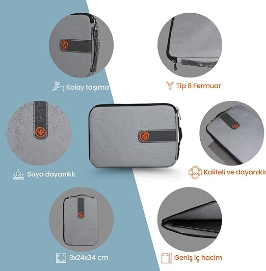 Ace 13″ Notebook & Tablet Kılıfı/Çantası-Açık Gri