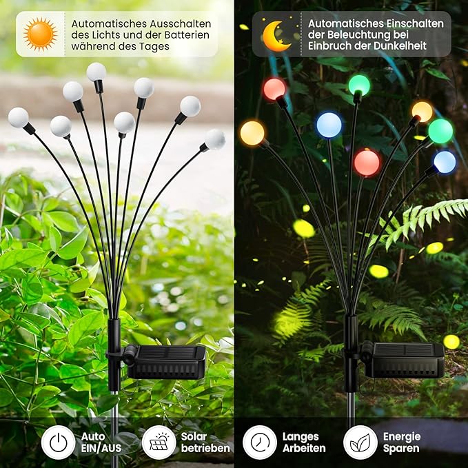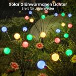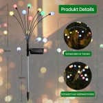 Açık bahçe için güneş lambaları, 2 paket ateş böcekleri güneş ışığı bahçe dekorasyonu, 2 modlu nane 8 renkli LED, IP65 su geçirmez, güneş sallanan dekoratif ışık bahçe balkon ananlu naneranda için, , Schwarz