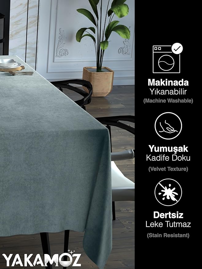 Açik Gri Kadife Dokulu Masa Örtüsü Dertsiz Velvet Touch Serisi