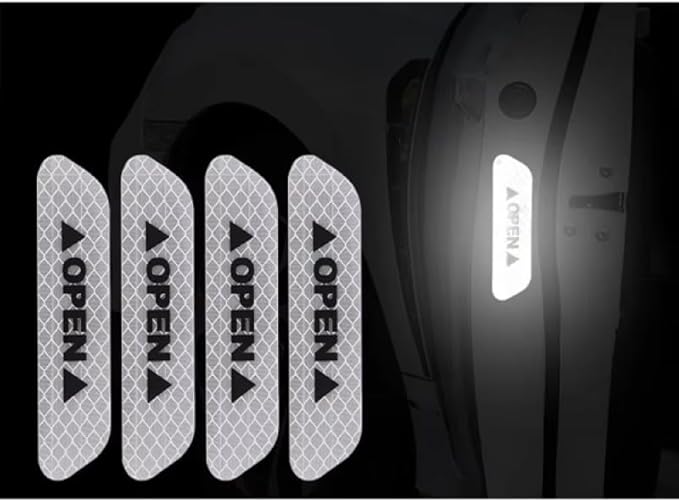 Açık Uyarı Reflektör Etiketi,Araba Kapısı için 4 Adet Reflektörlü Açık İstemi Çıkartmalar, 9,6 cm Otomatik Güvenlik Uyarı Çıkartmaları, Gece Görünürlüğü Çarpışma Önleyici Koruyucu Şerit, Beyaz