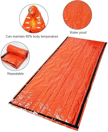 Acil durum termal uyku tulumu, ultra hafif, acil durum uyku tulumu, çift su geçirmez, acil durum barınağı, polietilen alüminyum film, hayatta kalma battaniyesi, uyku tulumu, yetişkinler için kışlık sıcak uyku tulumları