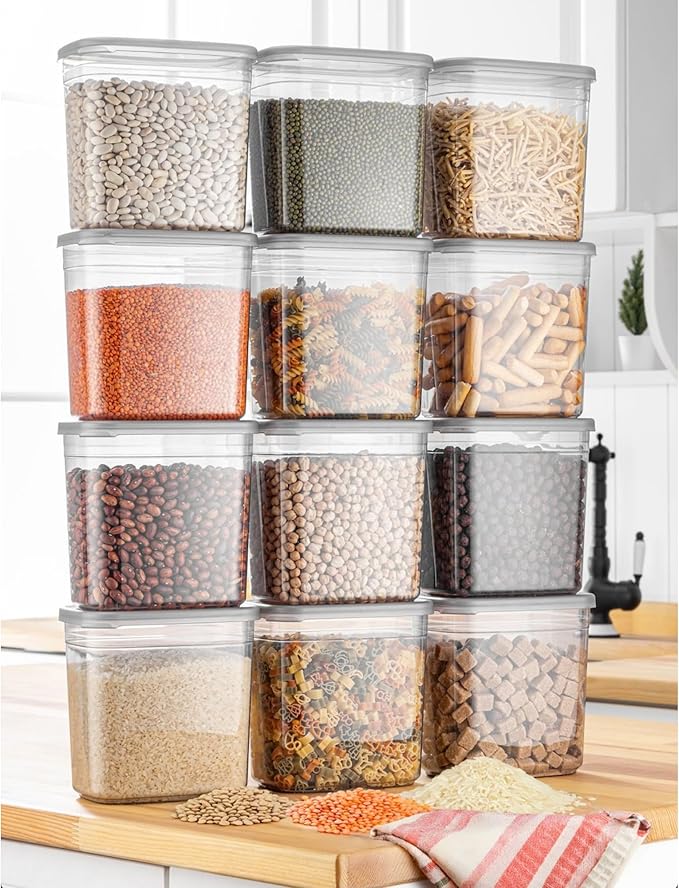 Adet 24 Parça 2 Litre Dikdörtgen Erzak Bakliyat Baharat Saklama Kabı Seti 20 Etiket Hediyeli