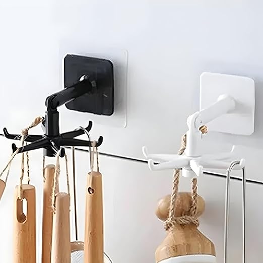 Adet 6 Kancalı 360° Döner Yapıştırmalı Askılık – Mutfak ve Banyo Organizeri, Kepçe, Havlu, Lif Askısı