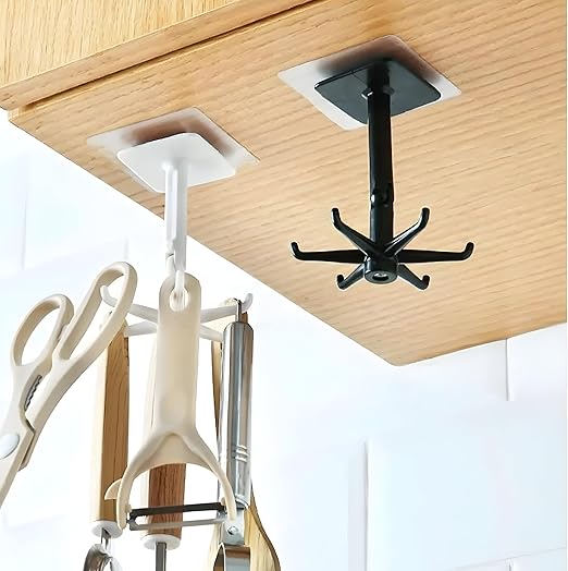 DÖNER TASARIM: 360 derece dönebilen 6 kancalı yapıştırmalı askılık, mutfak ve banyo eşyalarınızı düzenli bir şekilde organize etmenizi sağlar