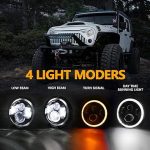 Uzun/kısa far, gündüz farı ve sinyal lambası bulunan bu 7 inçlik far süper parlak ve dayanıklıdır.