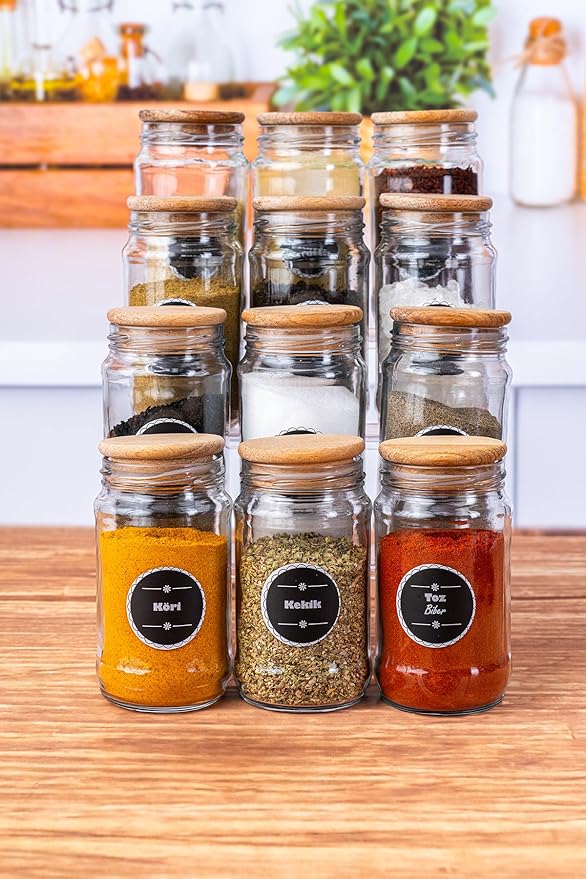 Adet Ahşap Kapaklı Cam Baharatlık Seti 320 Cc -12li Ahşap Kapaklı Baharat Takımı