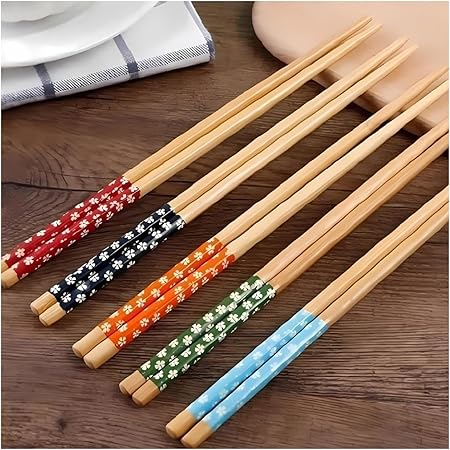 Adet Bambu Desenli Yıkanabilir Çin Çubuk – Sushi, Ramen ve Noodle Yemek Çubukları Seti