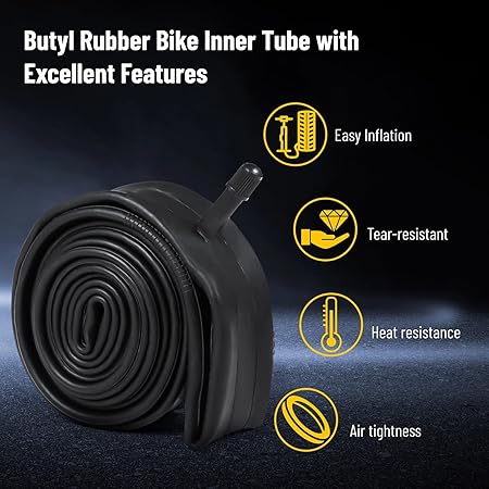 【Birinci sınıf bütil malzeme】Yüksek kaliteli bütil kauçuktan yapılmış bisiklet hortumları mükemmel esneklik ve yırtılma direnci sunar. Özel ısı dayanıklılığı malzeme yorulmasını önler, hava geçirmez yapısı uzun süreli basınç stabilitesini garanti eder – sportif sürüşler ve günlük kullanım için idealdir