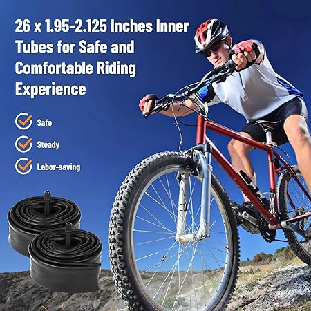 adet bisiklet iç lastiği, 26 inç araç sibopu, 26 x 1,95/2,0/2,1/2,125 inç MTB lastik, 26 inç, 2 lastik kolu ve 2 koruma kayışı, 32 mm Schrader valf, dağ bisikleti için