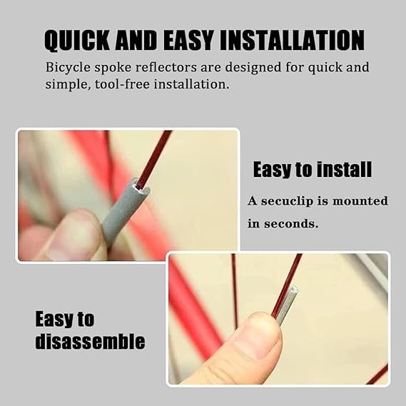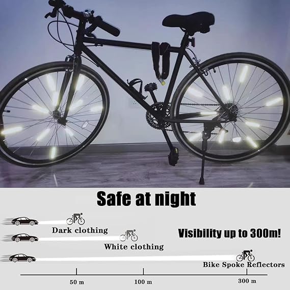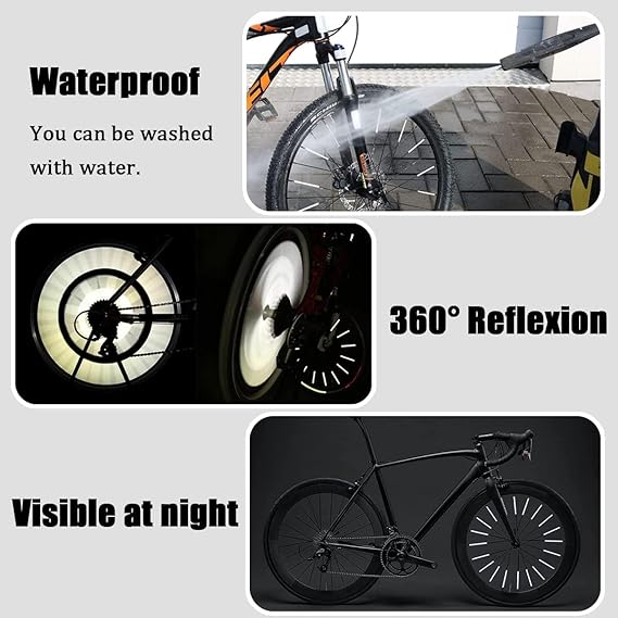 Güvenliği artırır – Bisikletler için mükemmel bir süs ve gece sürüşleri için vazgeçilmez bir koruyucu ekipman. Gece veya kötü havalarda, sürüş güvenliğini artırmak ve trafik kazası riskini azaltmak için ışık ışınlamasını yansıtır ve bir güvenlik uyarısı verir (NOT: Bunlar yansıtıcı şeritlerdir. Kendi başına parlak olamaz, harici ışığa ihtiyaç duyar!)