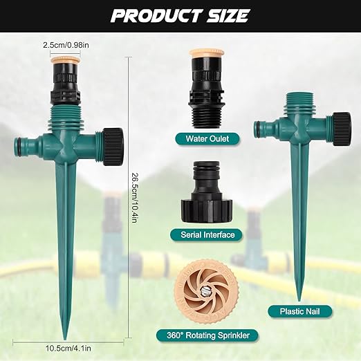 Otomatik sulama sistemi – Bu küçük çim fıskiyesi güçlü ABS plastikten üretilmiştir ve su geçirmezliğini, boyutunu ve çevresini ayarlayarak su tasarrufu sağlar. Bu çim fıskiyesinin boyutu 26,5 x 10,5 x 2,5 cm (10,4 x 4,1 x 0,98 inç).