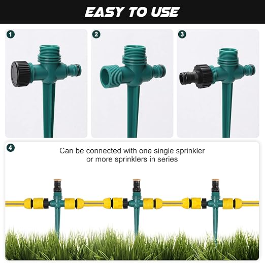 Kolay kullanım: Direk kolayca zemine sokulabilir, böylece koyduğunuz yerde kalır. Bahçe hortumunuzu çim fıskiyesinin hortum bağlantısına bağlayın ve musluğu açın. Su basıncı arttığında, çim fıskiyesi çimlerinizi yağmur gibi sular!
