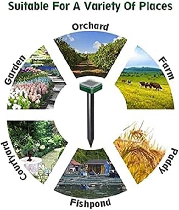 [Daha fazla için uygundur] Her Köstebek Kovucu 7 ft’ye kadar etkili bir menzile sahiptir. Etkilenen bölgelere 100 fit güneş köstebek kovucu yerleştirilmesi önerilir. Çiftlik, pirinç için; benleri, kemirgenleri, tarla farelerini, pulları ve diğer tahrip edilebilir kemirgenleri sürdürebilir.